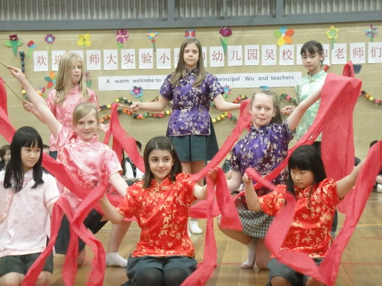 Traditional Chinese dance performed by students from Milgate Primary School to welcome the Chinese delegates.