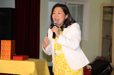 Du Jun, the executive principal from the headquarters of the Kindergarten, welcomes teachers and students from Friendship Kindergarten of Hong Kong Victoria Educational Organization as