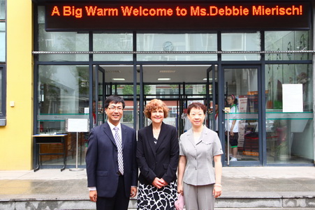 On the morning of May 27, teachers of Beijing Normal University Experimental Primary School held a grand welcoming ceremony for Principal Mierisch. Principal Huang of Beijing Normal University Kindergarten accompanied Principal Mierisch during the whole reception. After the reception, Principal Huang and Du Jun, the executive principal at BNUK headquarters, hosted a forum discussing the topic of “school leadership development” with Principal Mierisch. Principal Mierisch toured the school, observing computer/whiteboard teaching activities, music class, PE class, and others.