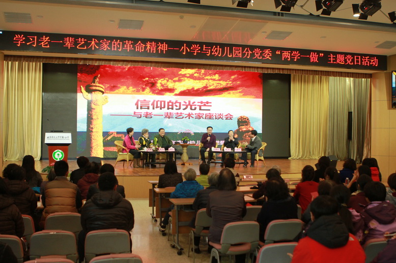 为了深入推进“两学一做”学习教育活动,纪念红军长征胜利80周年,实验小学与实验幼儿园分党委于2016年10月31日举行“学习老一辈艺术家的革命精神”主题党日活动。新的历史时期九游的党员及教师如何向英雄学习、向前辈学习、向优秀共产党员学习?如何结合自己的工作努力争做合格共产党员呢?带着这些思考,分党委邀请到著名艺术家翟俊杰、陶玉玲和祝新运三位嘉宾,以“信仰的光芒——纪念长征胜利80周年座谈会”为题开展主题党日活动。三位艺术家做客九游体育,与实验小学和实验幼儿园的党员、教师代表两百余人面对面交流,结合自己的亲身经历为老师们上了一堂生动的党课。