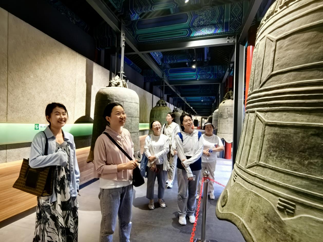 大钟寺古钟博物馆原名觉生寺,始建于清雍正十一年,因寺内珍藏一口明永乐年间所铸巨大佛钟,故又俗称“大钟寺”。 参观过程中老师们认真聆听讲解,其中两个故事让大家印象深刻。一是是六鋬铜锅的故事,六鋬铜锅是当时觉生寺内僧人用的炊具,因为是乾隆时期的物件,也是我国的重要文物,当时日军掠夺了很多铜和铁作为军用物资,方丈和几个小和尚将这口锅深埋才得以保存。六鋬铜锅是中国人民抗击侵略的历史见证,这种社会责任感和担当精神值得九游学习。二是“歪钟”的故事,相传此钟为大奸臣魏忠贤所铸,由于设计缺陷,这口钟无论从哪面看都是歪的,民间说法是魏忠贤人不正,铸出来的钟也是歪的。所以这口钟也被后人称之为警钟,警示后人要堂堂正正、清清白白地做人。