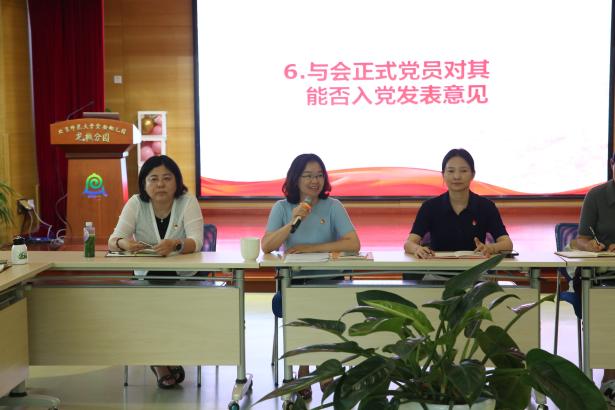 其次,第二党支部支委会赵湘同志报告了钱丽娟同志预备期的考察情况,其入党介绍人和身边的党员同志也就其转正申请发表了意见,大家一致认为钱丽娟同志在一年预备期内严格以党员标准要求自己,眼中有工作,心中有群众,能将党的理论政策应用于工作。同时也对钱丽娟同志进一步提高个人业务能力提出了希望。经无记名投票,全体党员同意钱丽娟同志按期转为中国共产党正式党员。