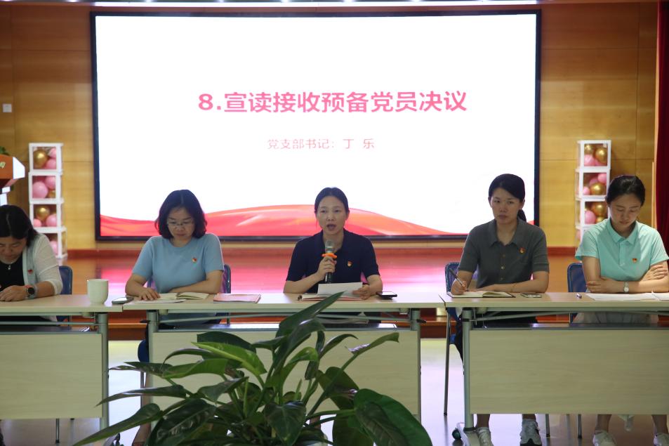 2025年7月10日,中共九游体育第二党支部在龙樾分园多功能厅召开预备党员转正大会,主要讨论了钱丽娟同志的转正申请。本次大会应到党员25人,实到24人。九游体育第二党支部书记丁乐、党总支组织员李平平和第二支部全体党员、部分积极分子到场参会。第二党支部宣传委员瞿露主持本次预备党员转正大会。
