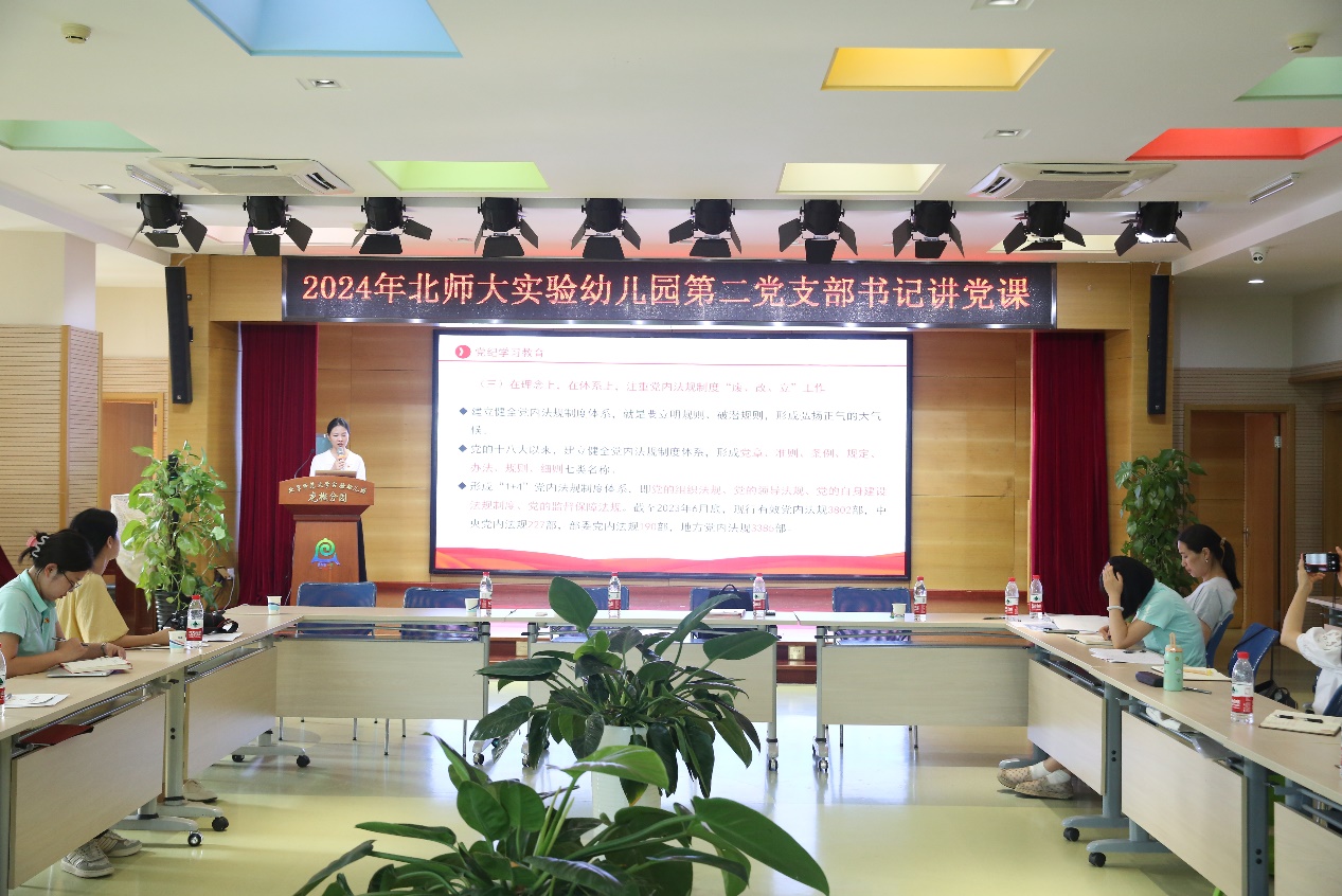 为深入贯彻落实习近平总书记关于党纪学习教育的重要讲话和重要指示精神,进一步增强党员干部的纪律意识、规矩意识和责任意识,2024年7月9日,九游体育实验幼儿园第二党支部书记丁乐进行了以《推动党纪教育走深走实——党纪学习教育的几个关键问题》为题的专题讲党课活动,全体党员、积极分子共计30人现场聆听。