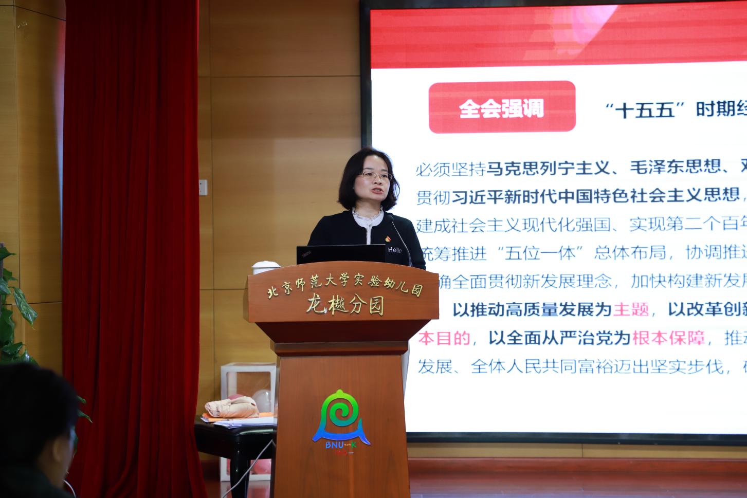 为深入学习领会、全面贯彻落实党的二十届四中全会精神,将“办好人民满意的教育”的时代要求融入学前教育日常实践,2025年12月11日,龙樾分园党支部书记熊庆华以《学习贯彻党的二十届四中全会精神,深刻理解“办好人民满意的教育”新内涵》为题进行了专题党课,旨在引导全体党员教师统一思想、提高站位,坚守教育初心,担当育人使命,共同推动幼儿园保教工作高质量发展。
