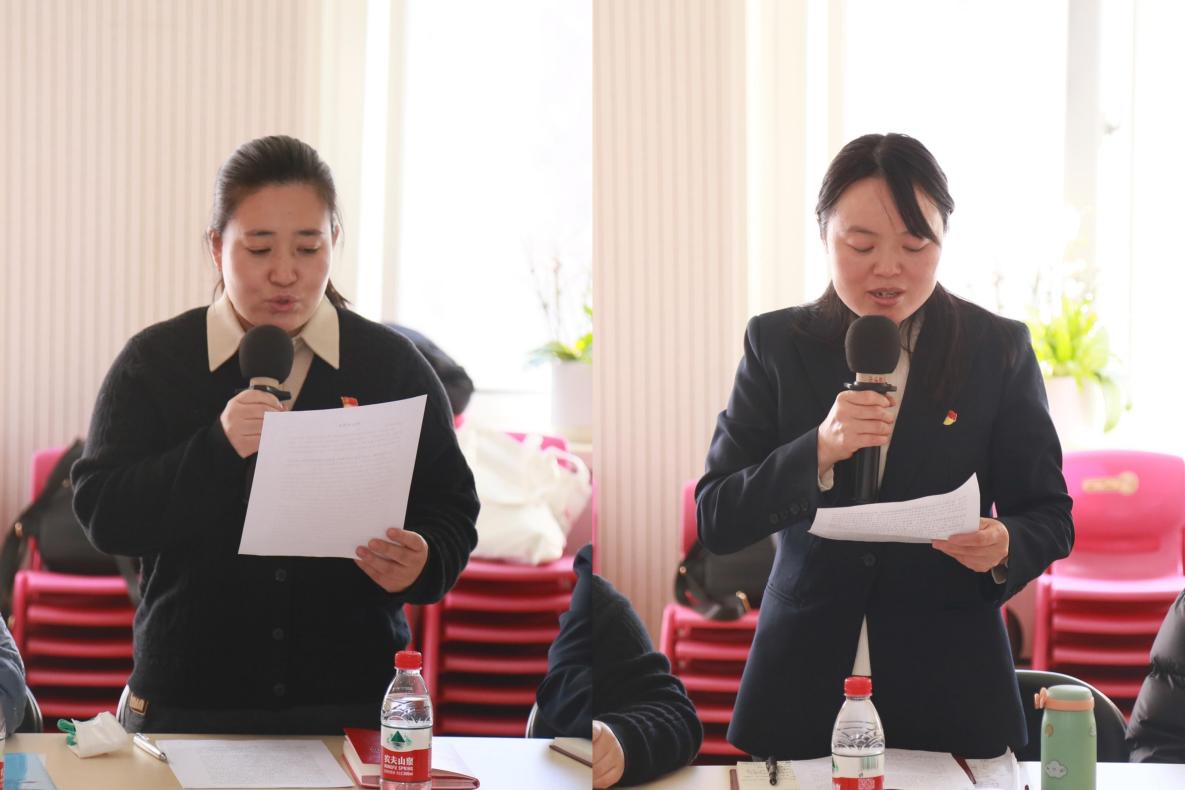 预备党员卢艳美、谢红玉宣读转正申请