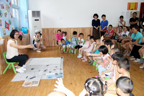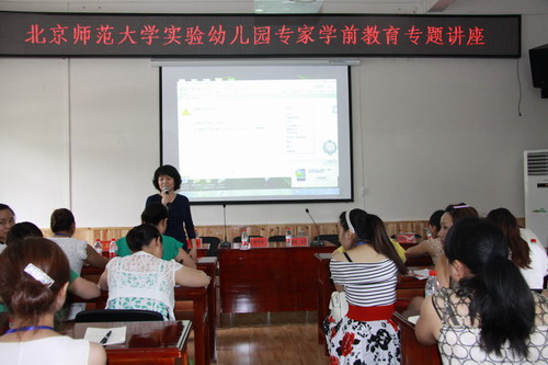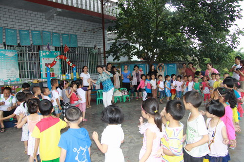 支教工作主要分为三个部分:专题讲座部分,执行园长徐翠凤做了题为“幼儿一日生活常规的培养”的讲座,湄潭县几十所幼儿园的园长及骨干教师参加活动,讲座强调了幼儿生活常规培养在幼儿园教育中的重要价值,将我园多年在培养幼儿良好常规中的经验与广大幼教同行分享。示范教学部分,我园骨干教师张静和亓静老师面向湄潭县近百位同行,分别做了美术活动《漂亮的衣服》和音乐活动《风筝和小鸟》示范教学,活动设计思路开放,活动材料大胆新颖,活动步骤环环相扣,孩子们的表现投入、关注,受到了当地领导和教师的一致好评。最后,教师团队在汪成孟园长的带领下来到湄潭县永兴镇留守儿童托管中心,组织孩子们开展丰富多彩的游戏活动。