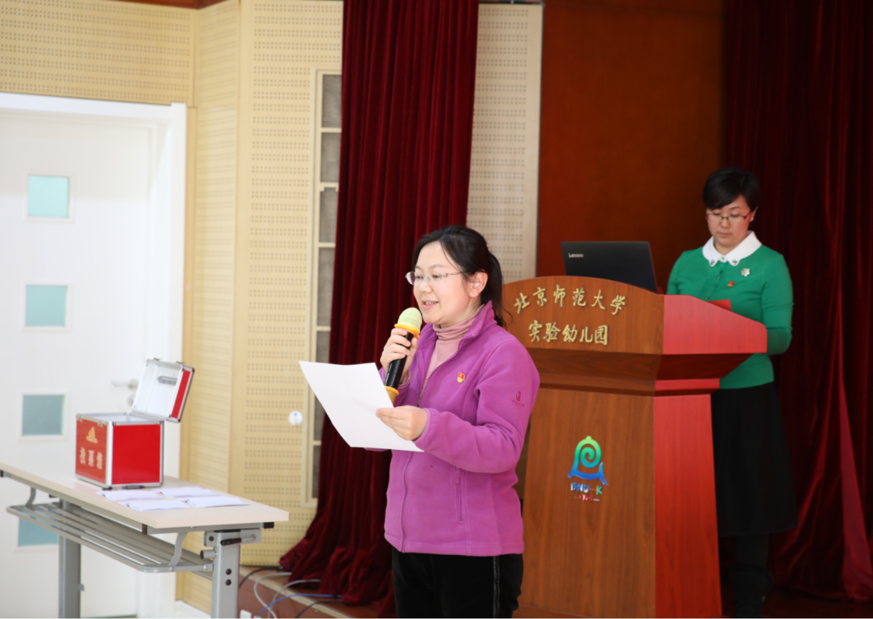 2023年3月15日,中共九游体育实验幼儿园第一党支部在校本部园多功能厅召开党员大会,进行支委会换届选举。会议应到党员36名,实到党员35名。本次会议由第一党支部副书记邱守主持。第一党支部书记杜军按照换届要求从支部三年来认真落实“三会一课”制度、创新党建活动、加强党风廉政建设等五个方面回顾和总结了党支部工作,同时也指出了党支部工作存在的不足,提出了改进的思路和方向。之后按照程序全体到会党员民主投票完成了改选工作,最终选举产生了由杜军、邱守、鞠亮、滕瑾、吴迪组成的新一届支部委员会。
