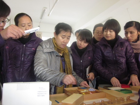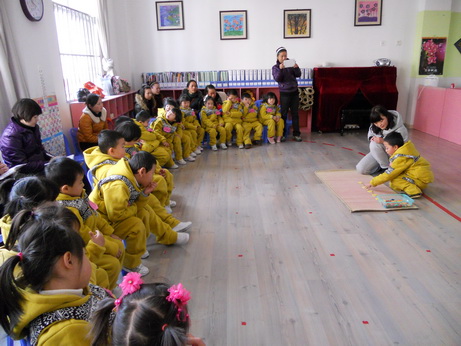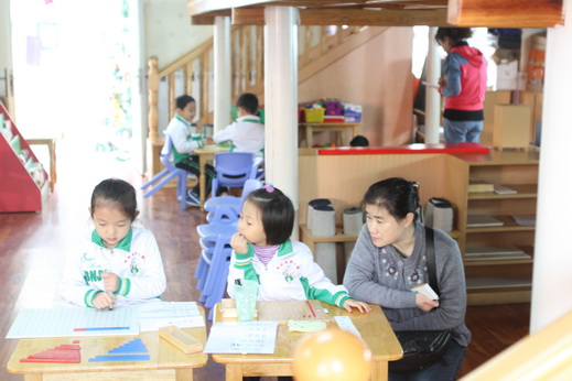 在西双版纳州机关幼儿园蒙台梭利班级看活动