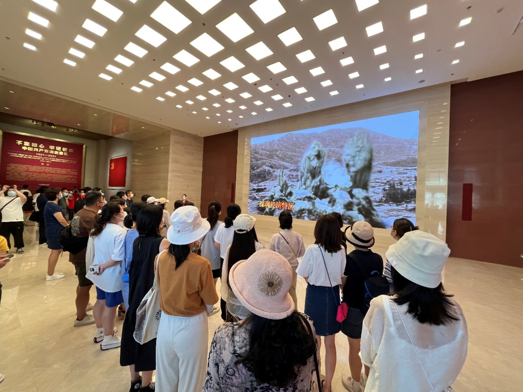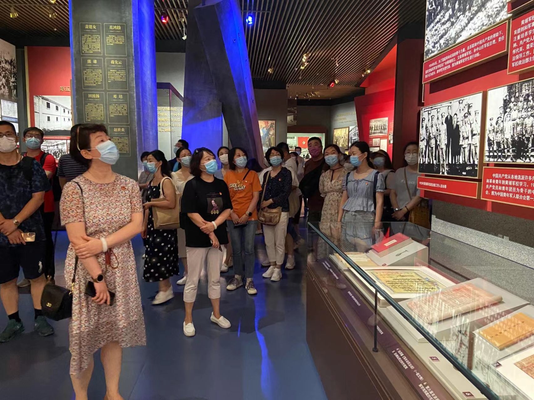 中国共产党历史展览馆是国内目前单体规模最大、功能最全面、地位最重要的国家级展览馆,第一次全景式反映中国共产党波澜壮阔百年历史。进入展厅,大家依次参观了“建立中国共产党 夺取新民主主义革命伟大胜利”“成立中华人民共和国 进行社会主义革命和建设”“实行改革开放 开创和发展中国特色社会主义”“推进中国特色社会主义进入新时代 全面建成小康社会开启全面建设社会主义现代化国家新征程”等九大部分展览内容。在珍贵的历史实物、翔实的档案资料、生动的图片影像、逼真的复原景观前,大家认真听取讲解,不时驻足拍照,重温党的百年波澜壮阔历史,深入领会伟大建党精神,感悟初心和使命。