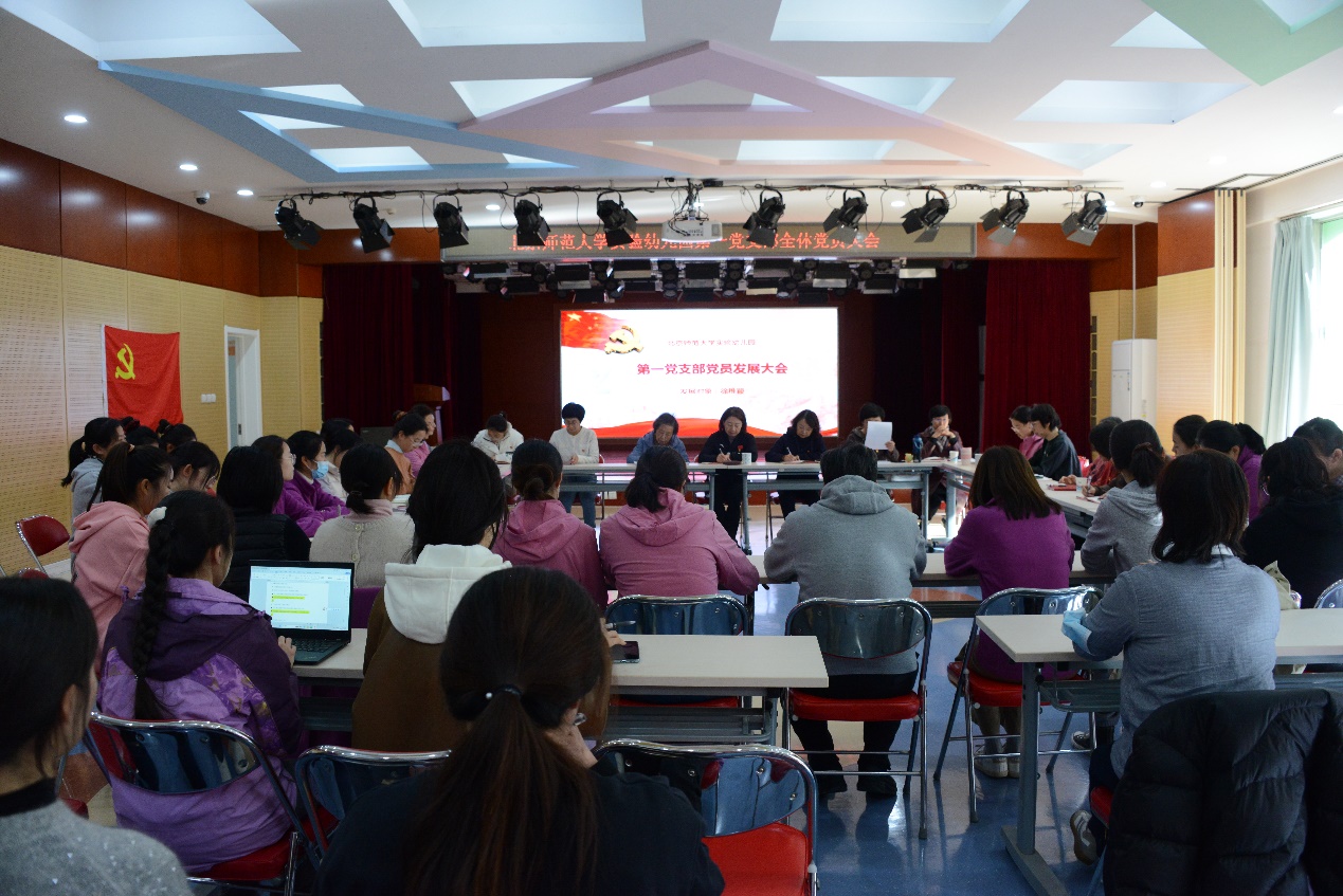 2023年11月10日,九游体育第一党支部在校本部园多功能厅召开全体党员大会,主要讨论发展徐稚颖同志加入党组织和王伟莹同志预备党员转正两项事宜。本次大会由北京市师范大学实验幼儿园第一党支部宣传委员滕瑾主持,九游体育黄珊书记和九游体育特邀组织委员金秀荣老师出席会议。
