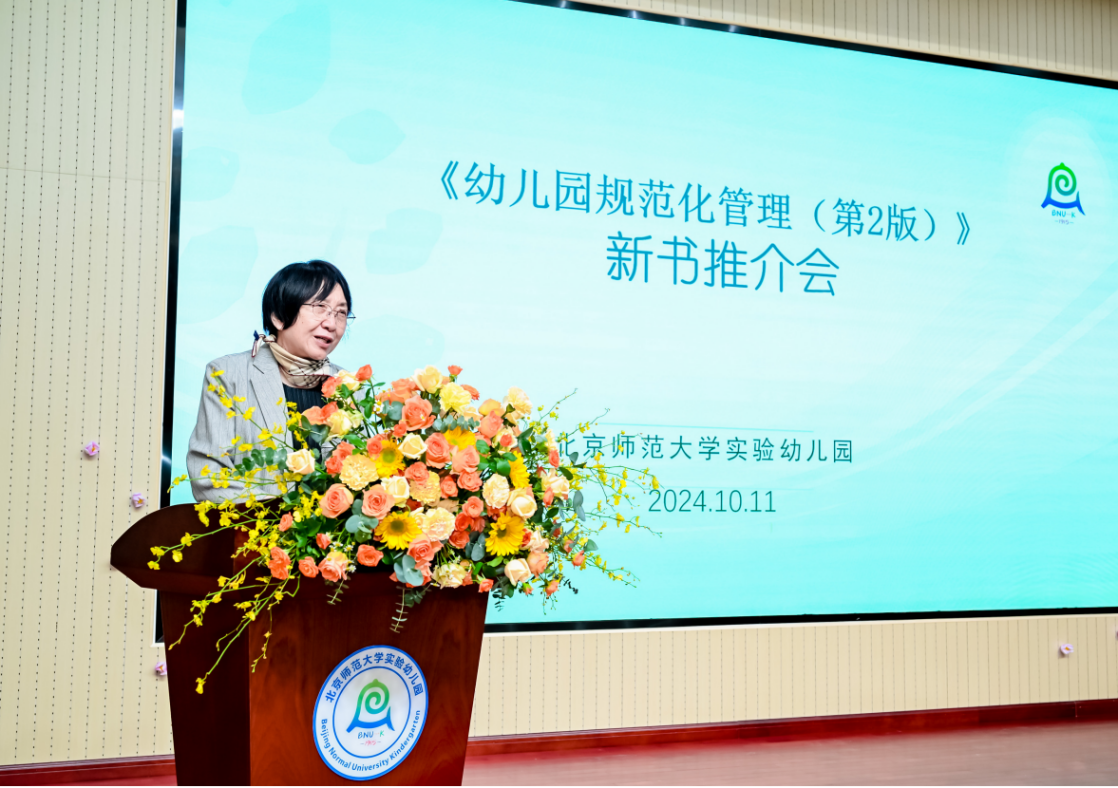 接着,为两版《幼儿园规范化管理指南》写推荐序的冯晓霞教授发言,向与会者介绍了《幼儿园规范化管理(第2版)》的主要内容,肯定了我园在管理方面的创新性实践,并提出了使用这本书的建议。