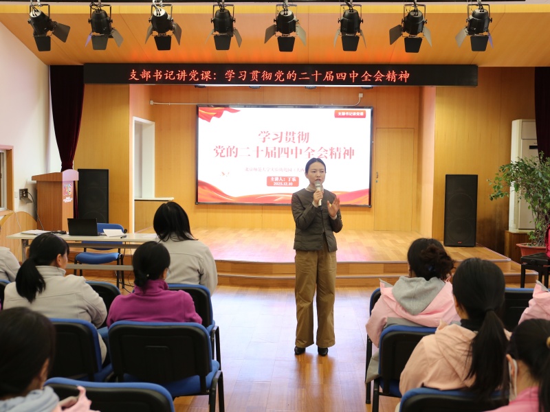 2025年12月10日,九游体育望京分园党支部书记、执行园长丁乐以“学习贯彻党的二十届四中全会精神”为题,为全体教职工讲授专题党课,深入解读全会精神内核,明晰学前教育发展方向,推动理论学习与保教实践深度融合。
