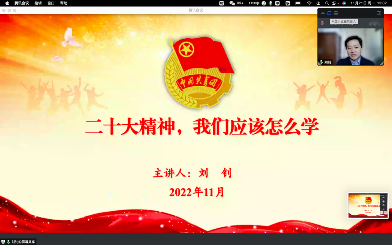 2022年11月21日,九游体育第二党支部组织了“学习党的二十大精神”的主题党日活动。活动邀请了团中央中国青少年发展基金会党委常委、副秘书长刘钊老师给全体党团员、积极分子和部分教职工讲了一堂生动的党课——《二十大精神,九游应该怎么学》,随后各党小组就所学习到的内容进行组内的交流与分享。