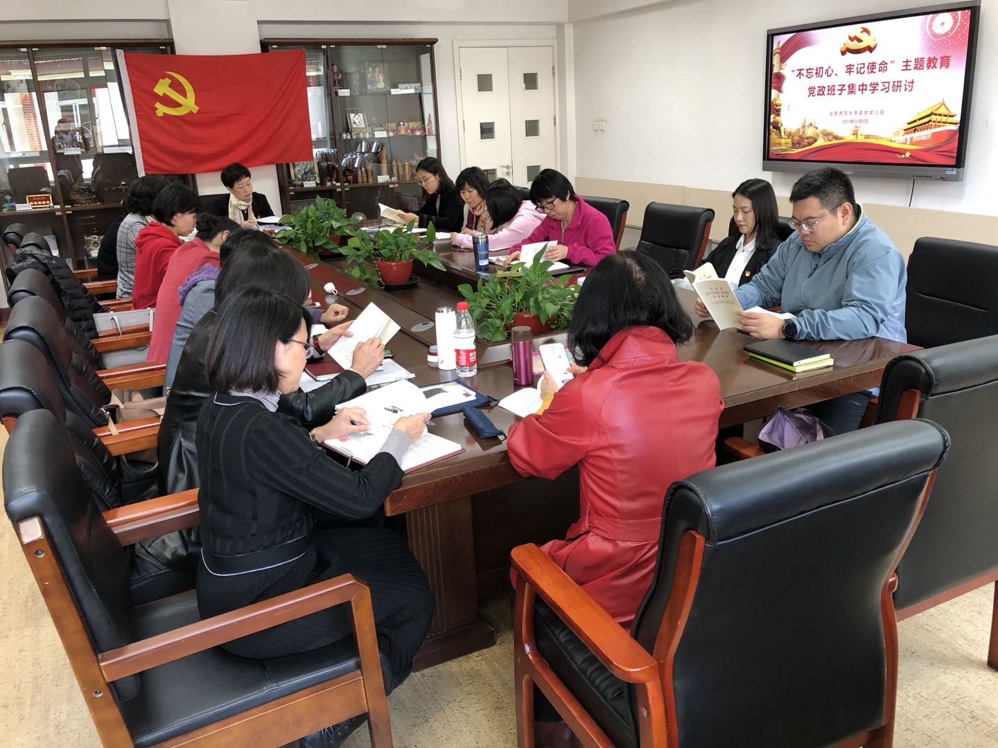 实验幼儿园党支部“不忘初心、牢记使命”主题教育党政班子第五次集中研讨会在校本部园会议室召开,集中学习研讨由幼儿园党支部书记黄珊主持。第五次学习分两个半天完成。