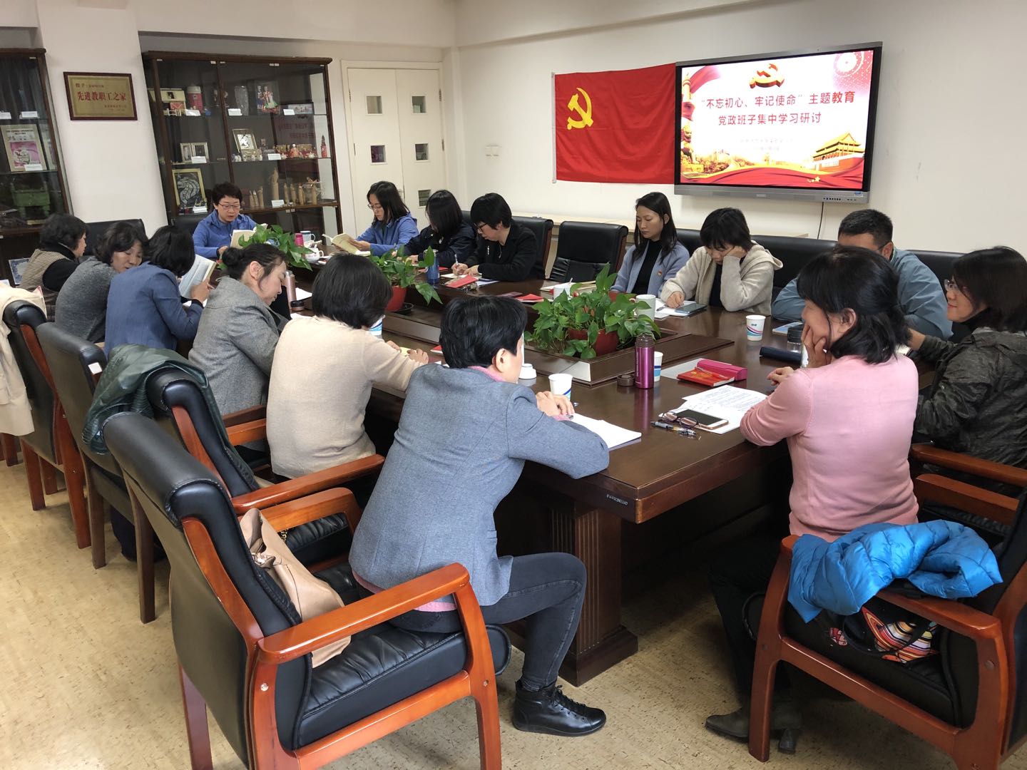 2019年11月5日上午的学习围绕“全面从严治党”主题展开。全体参会人员研读《习近平关于“不忘初心、牢记使命”论述摘编》第七部分“勇于自我革命,同一切影响党的先进性、弱化党的纯洁性的问题作坚决斗争”。党员干部围绕理论学习内容,结合近期实践学习及生活经历,从“从严治党对社会生活的巨大影响”“全面从严治党与党的初心使命”等方面分享学习感受。