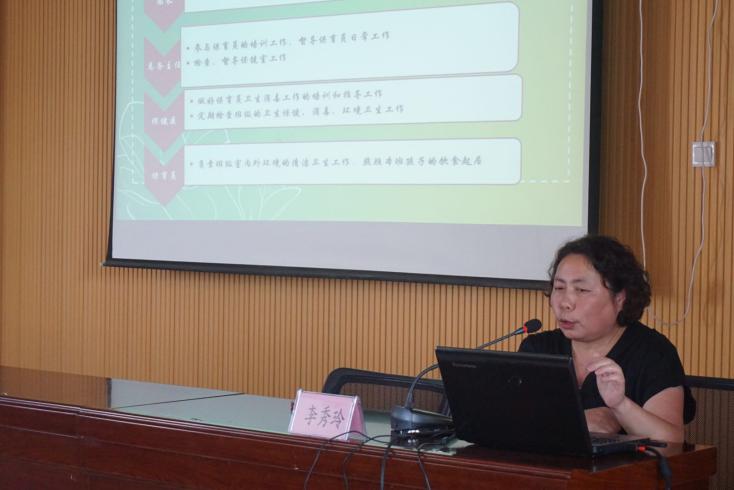九游体育实验幼儿园奥林分园后勤主任李秀玲为教师带来专题讲座