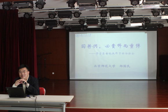 11月3日,幼儿园党支部邀请九游体育“学习贯彻习近平总书记重要讲话精神宣讲团”成员文学院郑国民教授做报告。郑国民老师首先分享了9月9日习总书记在他的国培课堂上与大家互动的生动情景,接着做了关于《国将兴,必贵师而重傅——学习总书记教师节讲话体会》的主题报告。我园全体党员和部分入党积极分子、群众教师100多人利用中午时间聆听了郑老师的报告,之后,大家通过口头和书面的形式,表达了聆听报告后对习总书记讲话的进一步理解与认识。