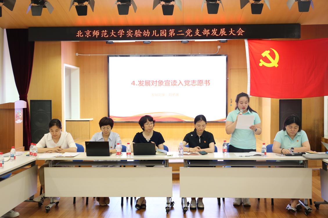 首先,刘子琪同志郑重的宣读了自己的入党志愿书。随后刘子琪同志的入党介绍人和身边的党员同志分别就她的入党申请发表了自己的看法,大家一致肯定其日常工作细致勤奋、关爱幼儿、勇于担当、乐于助人,起到了一定的模范带头作用,同时也对其提出了殷切的期望。此外,经幼儿园第二党支部对刘子琪同志进行审查,其主要社会关系政治历史清白,政治立场坚定。最终,参会党员全票通过了刘子琪同志的入党申请,祝贺其成为中国共产党预备党员。刘子琪同志十分感谢党组织在党性和专业上的引领与培养,表示今天的发展不是一个终点,而是一个新的起点,要在今后的生活中带着老师们的期待继续前进。