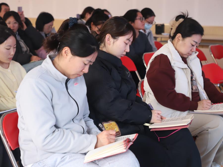 本次党课紧密围绕“为党育人、为国育才”的核心使命与学前教育高质量发展要求,深入阐释了党的二十届四中全会精神对幼儿园工作的实践指引。邱守书记强调,全体教师须提高政治站位,坚持党的全面领导、以人民为中心,发扬斗争精神。她从“幼有所育”迈向“幼有善育”的政策导向出发,明确指出安全是办园的生命线,必须人人尽责;要坚持依法办园、严守师德底线,营造优良育人环境;并要持续加强教师队伍建设,着力打造学习型、研究型团队。