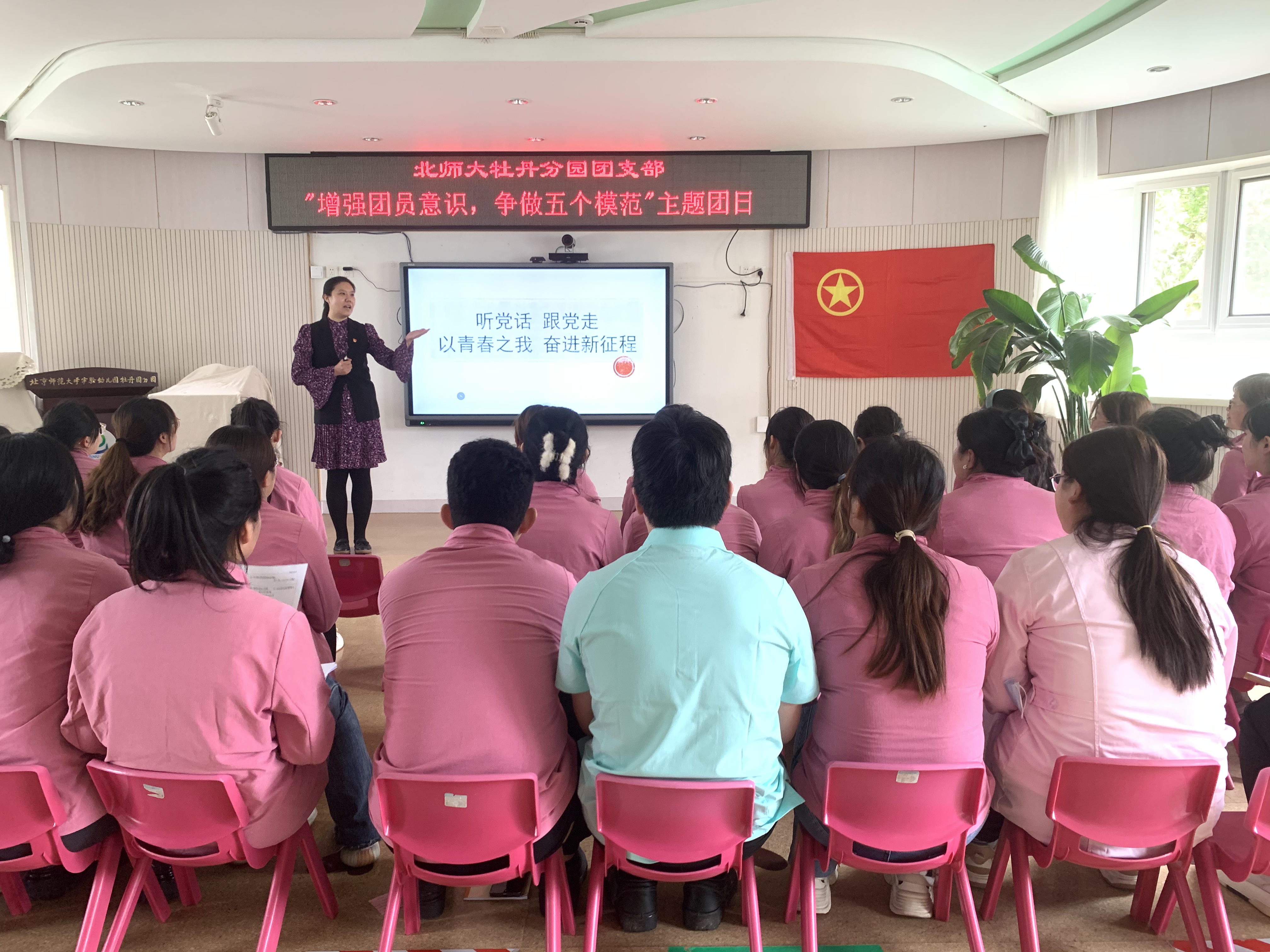 为深入学习贯彻习近平新时代中国特色社会主义思想,继承和发扬五四精神,增强广大团员青年的团员意识,牡丹分园团支部积极响应幼儿园团委号召,于2023年5月4日,面向全园共青团员教师开展了“增强团员意识,争做‘五个模范’”主题团日活动。