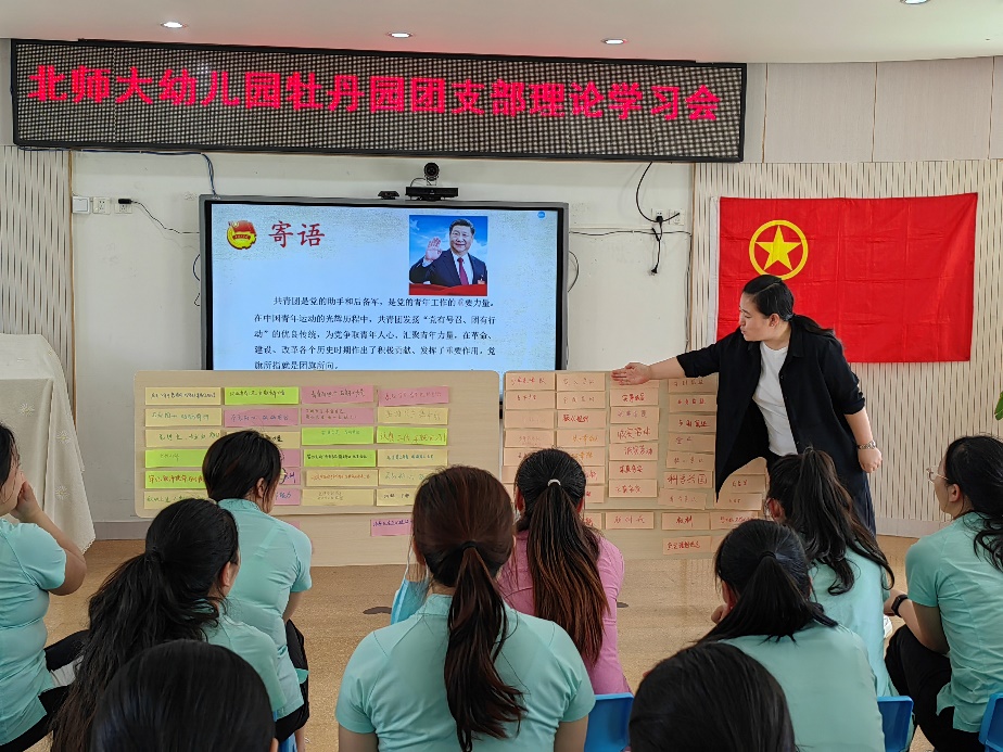 为深入学习贯彻习近平新时代中国特色社会主义思想,继承和发扬五四精神,增强广大团员青年的团员意识,牡丹园团支部于2023年5月12日带领全体共青团员教师开展了“增强团员意识,争做‘五个模范’”主题团日学习《中国共产主义青年团章程》的理论学习活动。