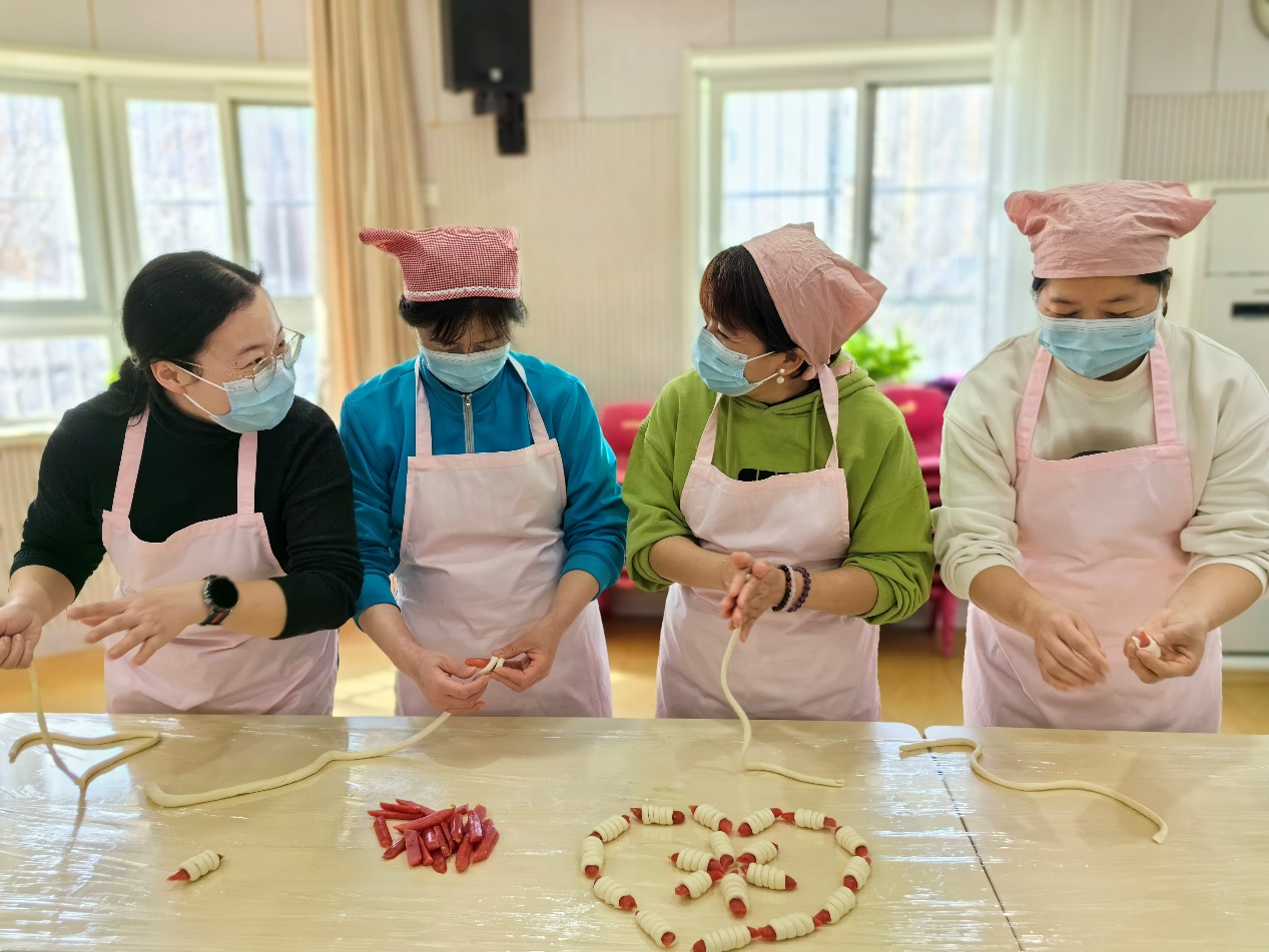2024年3月7—8日,在第114个“三八”国际劳动妇女节来临之际,牡丹分园开展了“烘烤快乐 美味制作”特别活动。活动现场,厨房老师与工会老师携手布置场地,为教职工提供制作美食的服装、工具和食材。活动过程中,老师们认真学习制作方法,互相帮助,互相合作,在一阵阵欢声笑语中,一个个小巧饱满的香肠卷摆满了桌面,老师们也在此刻感受到活动带来的放松与快乐。
