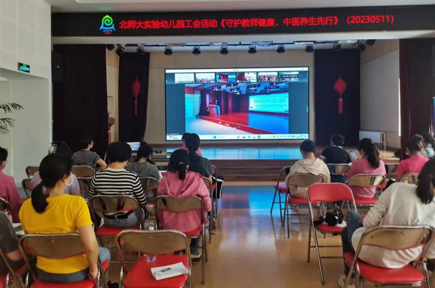 中医文化源远流长,博大精深。为帮助教师感受中医文化的独特魅力,树立健康生活理念,幼儿园工会于2023年5月11日,特邀北京十方泰和中医医学研究院院长杜冰及团队,开启了“守护教师健康,中医养生先行”健康讲座。活动以线上线下结合的方式开展。校本部园主会场52人,线上六所分园共计211余名教职员工参加活动。幼儿园党总支书记、总园长黄珊,工会主席丁乐与教职员工共同线下参加活动。工会副主席吕霞主持活动。