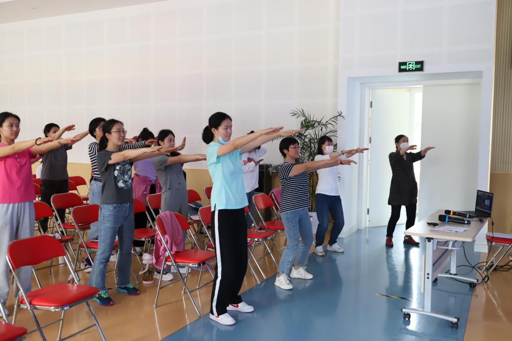 杜冰院长将中医养生原理娓娓道来,从对健康的认识、基于“五自”的健康必由之路、五藏是生命的分类系统、经络是生命的“软件”系统及经络导养法五个方面对教师健康自我管理进行了详细诠释。理论讲座后,十方泰和中医研究院医师团队带领教职员工学习预备式、摆臂贯通法、擦胸抹肋法、推心置腹法、揉腹透热法、叩中府法、搓双肾法及搓涌泉法等常用的经络养生法,并进行了现场指导。