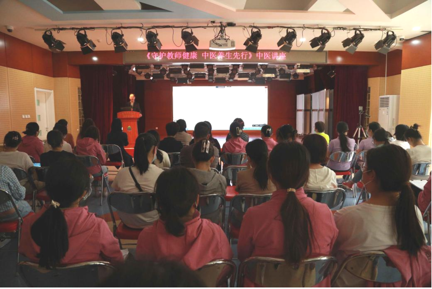 北京十方泰和中医医学研究院院长杜冰做“教师健康自我管理”的专题讲座