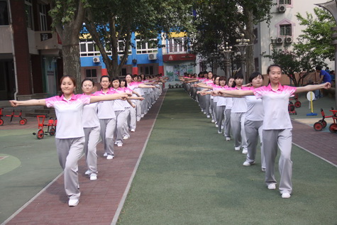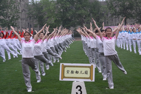 4月23日,我园在学校东操场参加了2014年全校教职工广播操团体比赛。为响应校工会“丰富广大教职工校园文化生活,倡导健康快乐的工作生活理念”的号召,我园工会积极组织教职工利用休闲时间进行练习与参加。