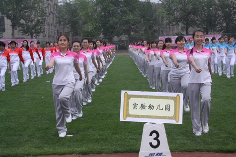 青春靓丽的幼儿园方阵,以健康良好的精神风貌和整齐的动作、队形,赢得了现场的阵阵掌声。经过大会委员会评选,实验幼儿园凭斩获一等奖。