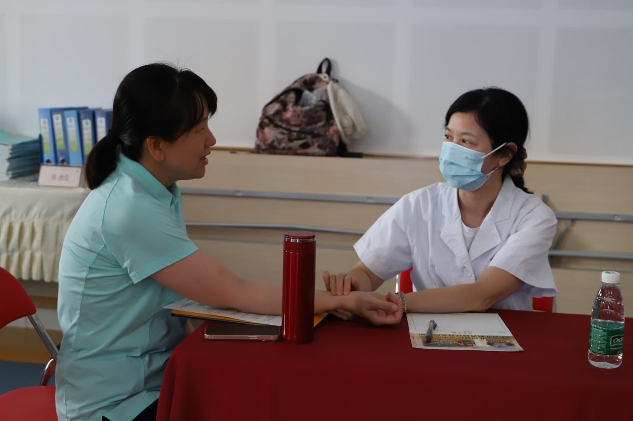 推拿科大夫周源指导大家学习了双掌摩颈、左顾右盼、前后点头、青龙摆尾、头首相抗等8节颈椎保健操,帮助老师们获得简单实用肩颈保健方法。内分泌科大夫钟柳娜、孟捷,推拿科大夫崔晶、周源为老师们一一问诊,解答老师们在睡眠不安、脾胃不和、肩颈不适、内分泌失调等方面的困惑,并为从中药治疗、日常生活保健等方面给予大家建议。