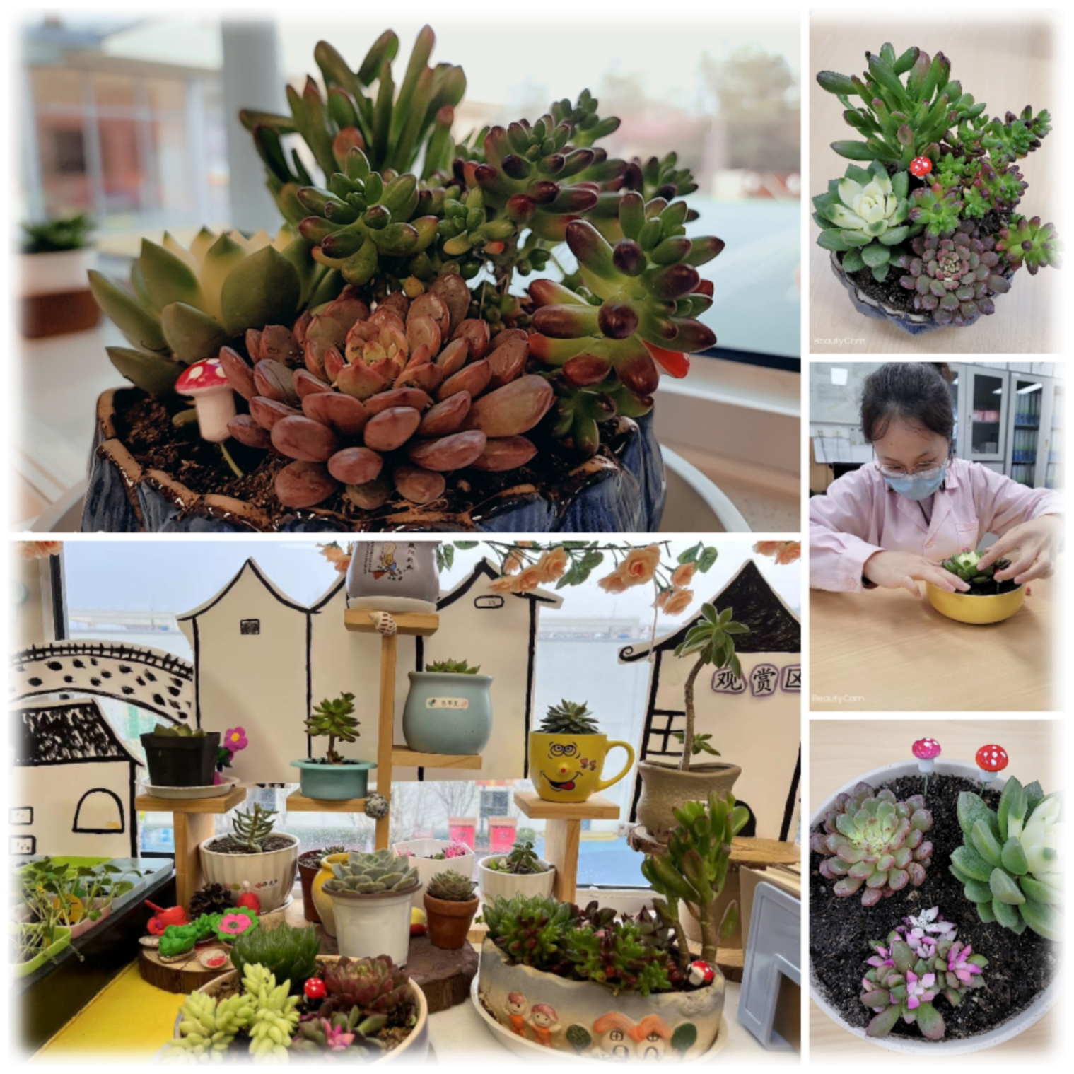 在这个春意盎然的季节,新校区园为女教职工们送上了丰富多样充满生机的多肉绿植。女教职工在制作中尽情释放自己的想象力,打造各具特色的微观多肉盆景。