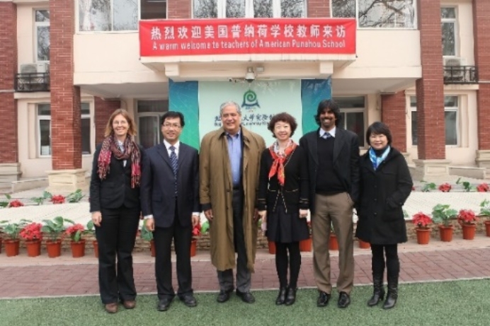 普纳荷学校(PunahouSchool),始建于1841年,是 “全美排名前五的中学”,也是两位总统孙中山先生和奥巴马先生的母校,我园自2010年,与普纳荷学校成为姐妹校,开展了10余期教师专业发展培训项目,互访多次,普纳荷学校校长Jim先生,国际中心前主任果华老师、Emily女士以及现任主任ChaiReddy先生也都来访我园,深化了两校的合作与交流。疫情期间,两校之间互相分享了线上的教育资源。2015年,时任国际中心主任的Emily女士出席我园2015年的百年庆典,参加了我园举办的“蒙养百年 倡导开新”国际学前教育大会,并在分会场做专题发言。