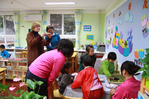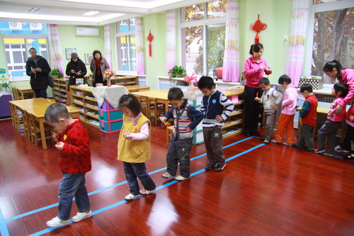美国客人首先分别进入到中、大及全托三个班级,完整观察了孩子们的室内活动;之后,就各自观察所见和感兴趣的问题与我三依园领导进行了深入的沟通和交流;最后,在杜园长的带领下,美国客人还兴致勃勃地参观了我园的环境。