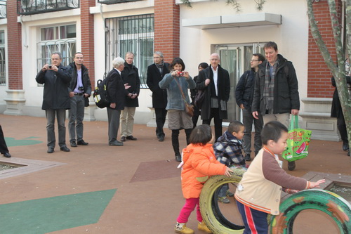 在校本部执行园长杜军的带领下,代表团一行先后参观了我园的班级环境、音乐专职课、园史墙及图书馆,最后兴致勃勃地观看了孩子们的户外活动。在参观过程及随后的交流中,纷纷表示,我园悠久的历史、教师工作中的细致与创意、孩子们的快乐与自主等都给他们留下了非常深刻的印象。