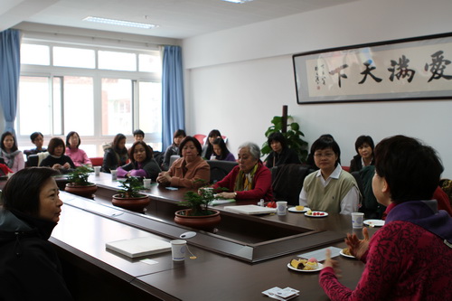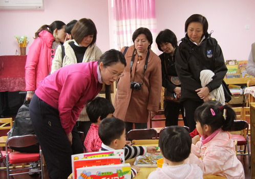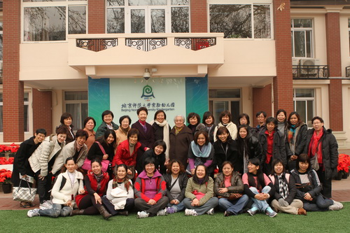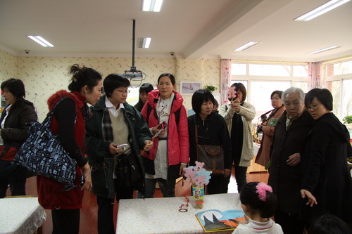2012年3月16日,在教育学部两位资深老专家梁志燊和祝士媛的陪同下,来自新加坡人民行动党国会议员李美花以及社区基金义顺南幼稚园的30多位园长和教职工来到校本部园进行参观考察,黄珊总园长和校本部杜军园长热情接待了来宾。