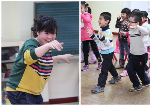 一组客人观摩吕霞老师的音乐活动