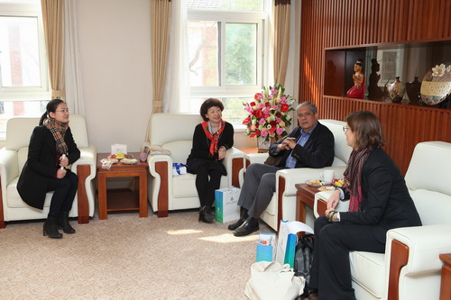 3月27日,美国普纳荷友好学校的校长Jim先生、国际中心主任Emily女士、副主任Chei先生一行访问我园,总园长黄珊、校本部园执行园长杜军热情接待。
