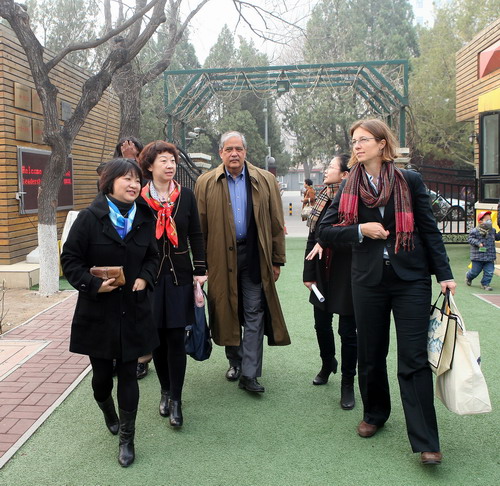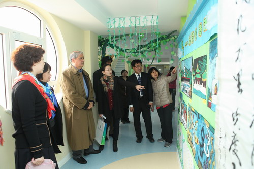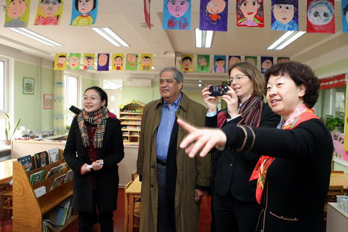一行参观了我园的校园文化墙、儿童图书馆、园史展览、“春天·北京”幼儿作品展,并进入班级与孩子互动。参观结束双方进行了座谈,Jim先生以及同行对我园精致优美的环境,富有特色的幼儿早操等给予充分肯定,同时表示很高兴看到普纳荷的一些理念、做法在我园的延伸,认为我园的课程与普纳荷低幼年龄段的课程有许多共同之处。黄珊园长代表幼儿园对普纳荷学校为我园教师专业发展提供的宝贵资源表示衷心感谢。随后,双方就未来合作方向进行探讨,表示未来可以增加美方派教师来我园学习、双方共同组织主题研讨等多种深入的合作。