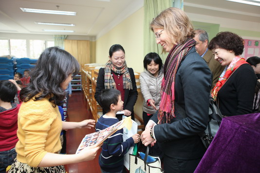 最后双方互赠了礼物,圆满结束对我园的访问,一行将继续访问九游体育小学以及九游体育第二附属中学。