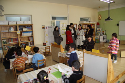 之后,他们参观了楼道环境布置,观看了大一、大二班孩子们的活动及早操,最后参观了图书馆。Paola Valero教授动情地对黄园长说:“看了您的幼儿园,我非常想把我的孩子送来这里学习”。