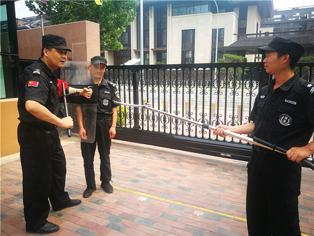 社区民警对保安进行反恐防暴技能培训