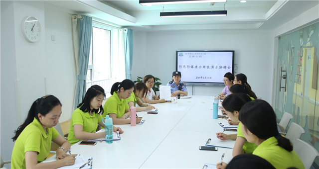 为提高幼儿园处置突发暴力事件的应急能力,2019年6月20日龙樾分园联合西三旗派出所、承城物业安保部开展了反恐防暴应急疏散演习活动。 演练开始前执行园长吴媛媛严密部署演习预案,明确疏散路线。兼任我园法制副园长的西三旗派出所王警官重点对教师进行防恐防暴知识与技能教育,总务主任钱丽娟详细讲解了疏散过程中教师占位职责及注意事项。各班老师均进行“坏人来了,怎么办”的相关安全教育活动,指导幼儿如何自我保护。经过充分的准备,在演练的过程中确保了师幼高效率、高质量的逃生。 通过此次演习,进一步提高了安保人员的警惕性,增强了教师的防暴意识与处理突发事件的应急能力,明确了各岗的分工与职责,提高了幼儿的自我保护意识,确保园内的安全稳定。