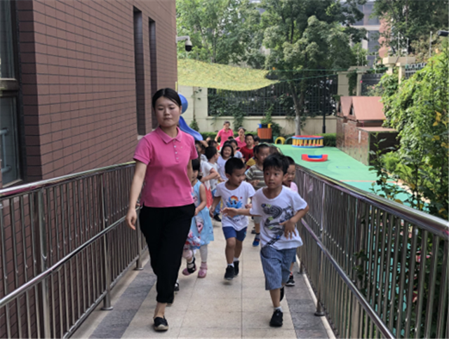 教师带领幼儿迅速逃生躲避