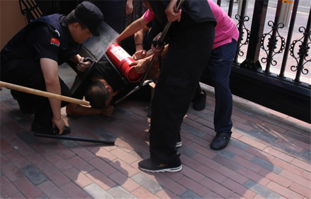 “匪徒”翻门而入,并被迅速制服