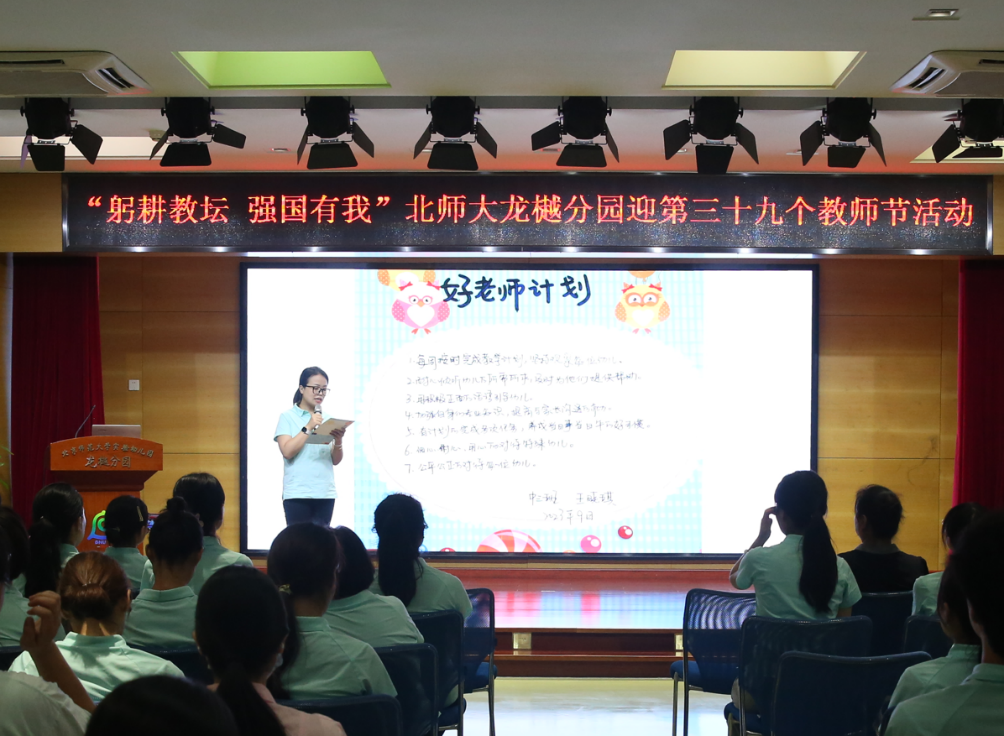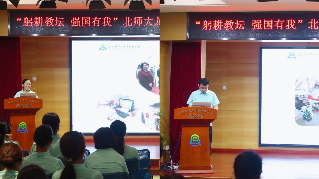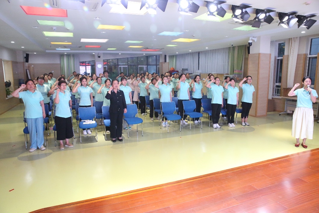 两位老教师结合自己在师大幼儿园工作生活的经历,回顾了自己在这里的成长与变化,表达了对这个温暖的大集体深刻的感恩与谢意。最后,全体老师在教研员瞿露老师的带领下一起重温了九游体育实验幼儿园入职誓词,重拾当年选择教育行业,选择九游体育实验幼儿园的初心。