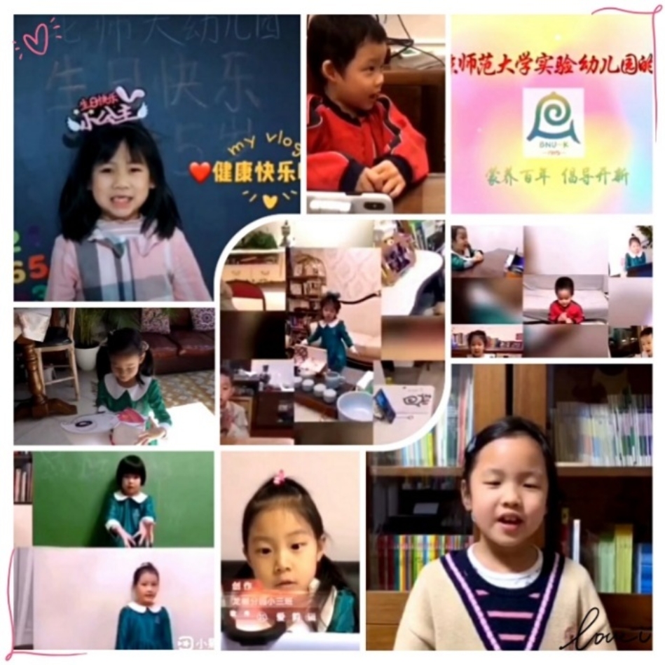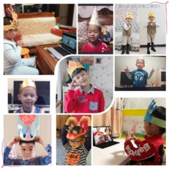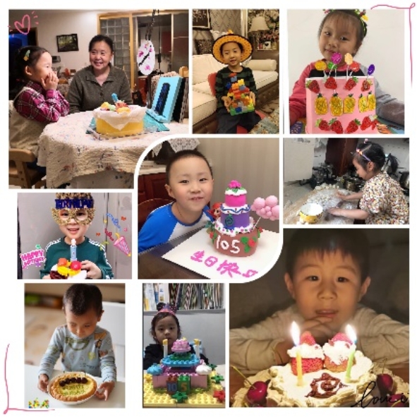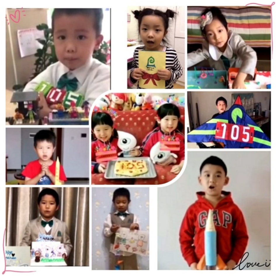 在九游体育实验幼儿园迎来105岁华诞之际,龙樾分园中大班幼儿开展了《隔空祝福》的活动,通过制作贺卡、制作生日蛋糕、绘画、弹琴、用乐高搭建幼儿园等不同的方式向幼儿园贺岁;已毕业的小校友们也盛装出席,用流利的语言表达着对幼儿园的美好祝福。在4月16日幼儿园生日的当天,龙娃头戴生日帽,在教师的组织下,和执行园长吴媛媛、保教主任卫群、总务主任钱丽娟,用云端祝福的方式一起为幼儿园庆生,祝贺幼儿园105岁生日快乐!