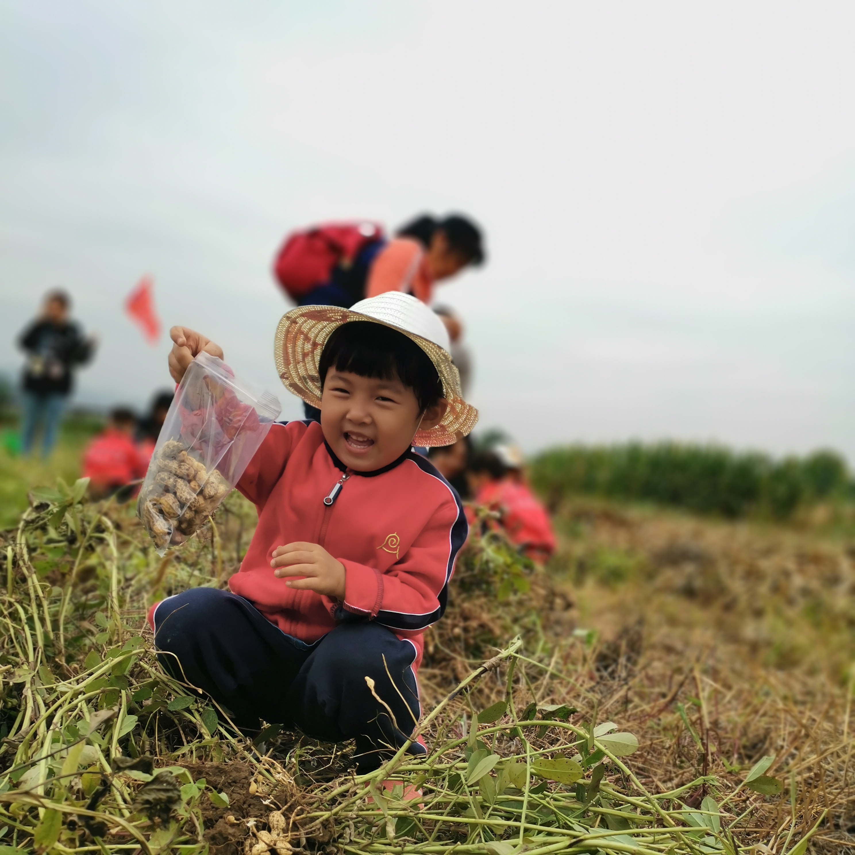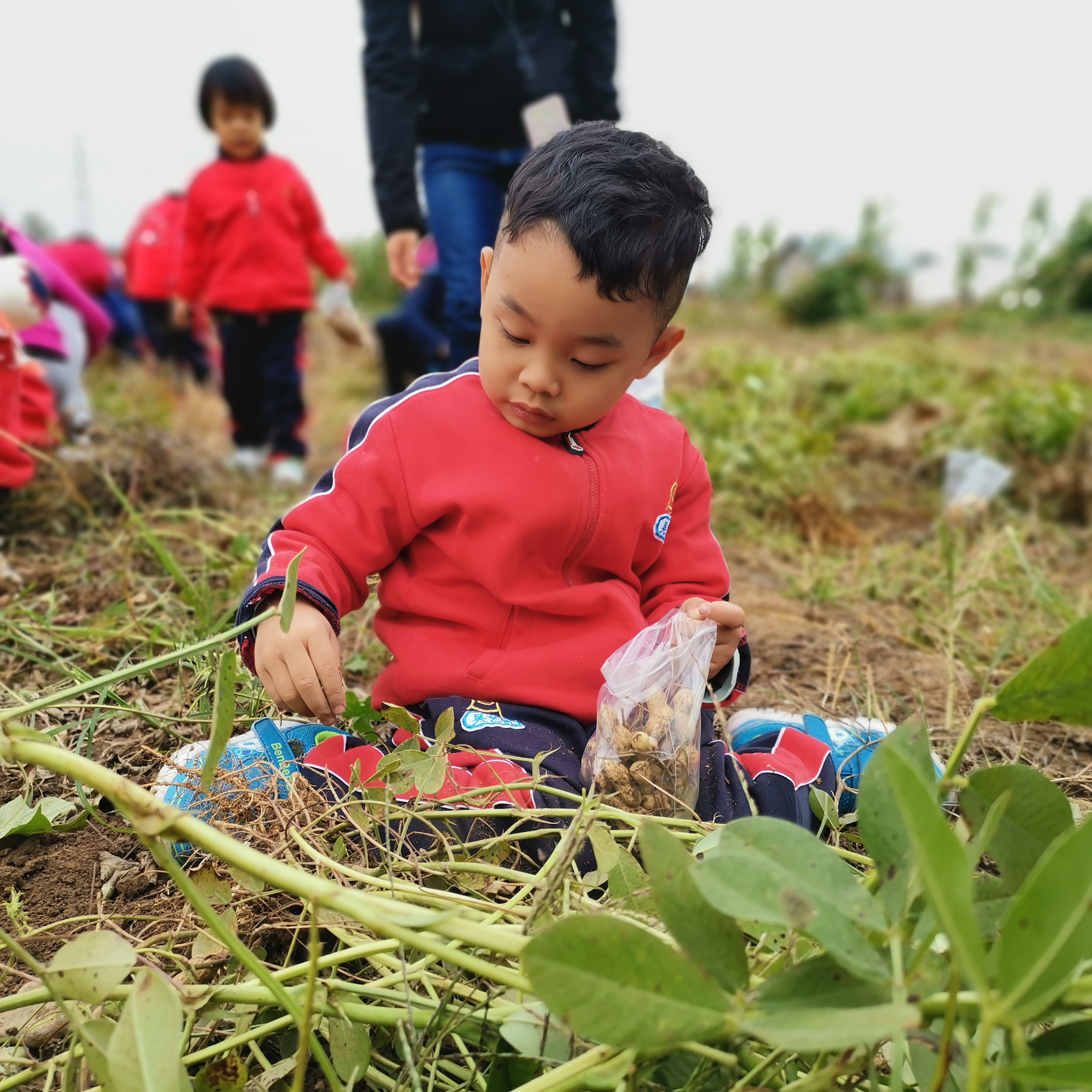 “嘿呦...嘿呦...”九游在拔花生呢!原来花生的家在泥土里,这些花生又大又圆,一定很好吃!